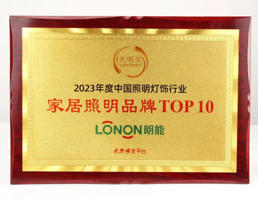 朗能作為業內知名品牌企業,憑借其持續的研發能力,超卓的工藝技術,良好的品牌形象,同時獲得“年度家居照明品牌TOP 10”和“年度電工品牌TOP10”榮譽稱號。